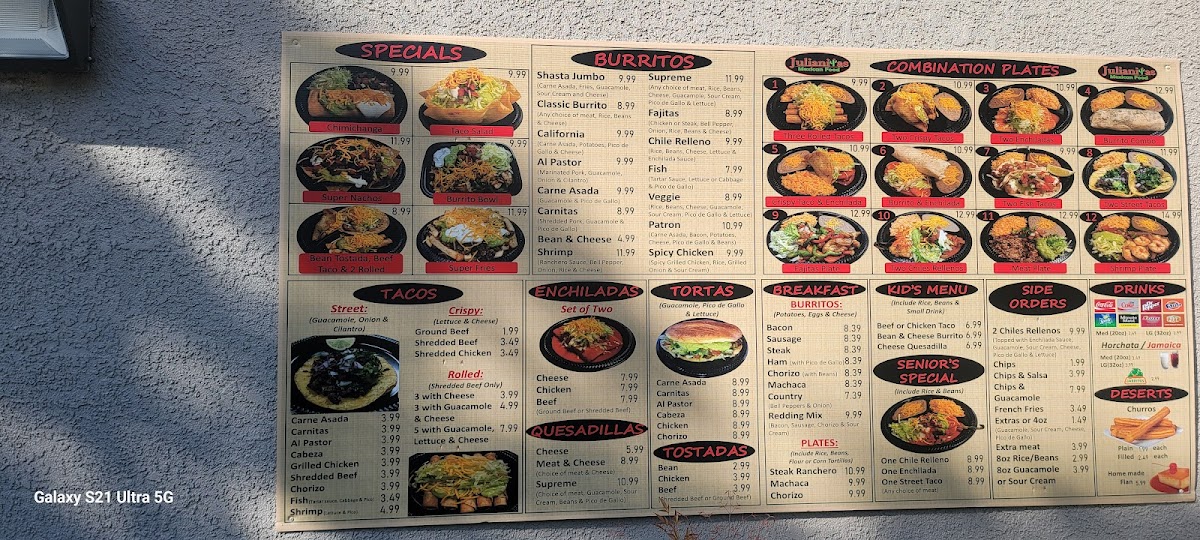 Welcome to Julianita’s Mexican Food, a hidden gem located at 1725 Cascade Blvd, Shasta Lake, CA. Despite its gas station backdrop, this eatery serves up authentic Mexican dishes that keep locals returning for more. The extensive menu caters to all cravings, from kid-approved items like the Beef or Chicken Taco and Bean & Cheese Burrito to hearty Combination Plates that feature everything from Fajitas to Three Rolled Tacos at reasonable prices.